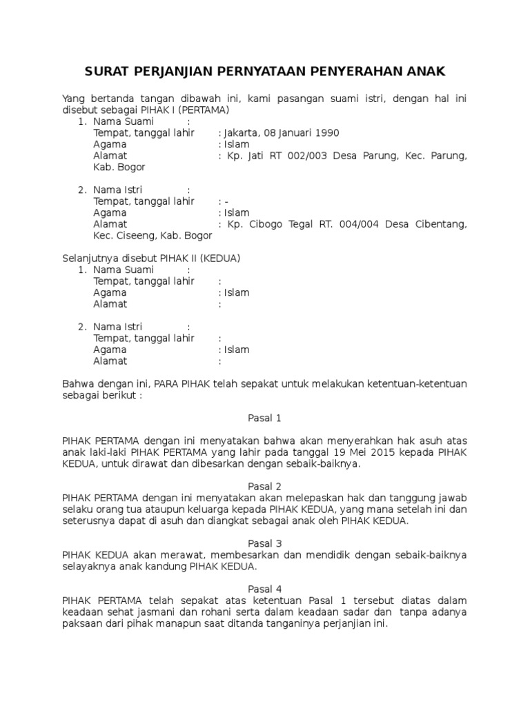Surat Pernyataan Penyerahan Hak Asuh Anak Pdf